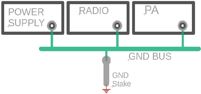 Erdleitungen von einem Gerät zum nächsten durchzuschleifen, ist schlechte Praxis, da Rauschen über diese Erdleitung übertragen werden kann, insbesondere vom Netzteil zum Empfänger. Bedenken Sie: Selbst eine ausgezeichnete Salzwassererde hat immer noch einen gewissen Widerstand und eine Reaktanz (mehr als 2 Ohm).